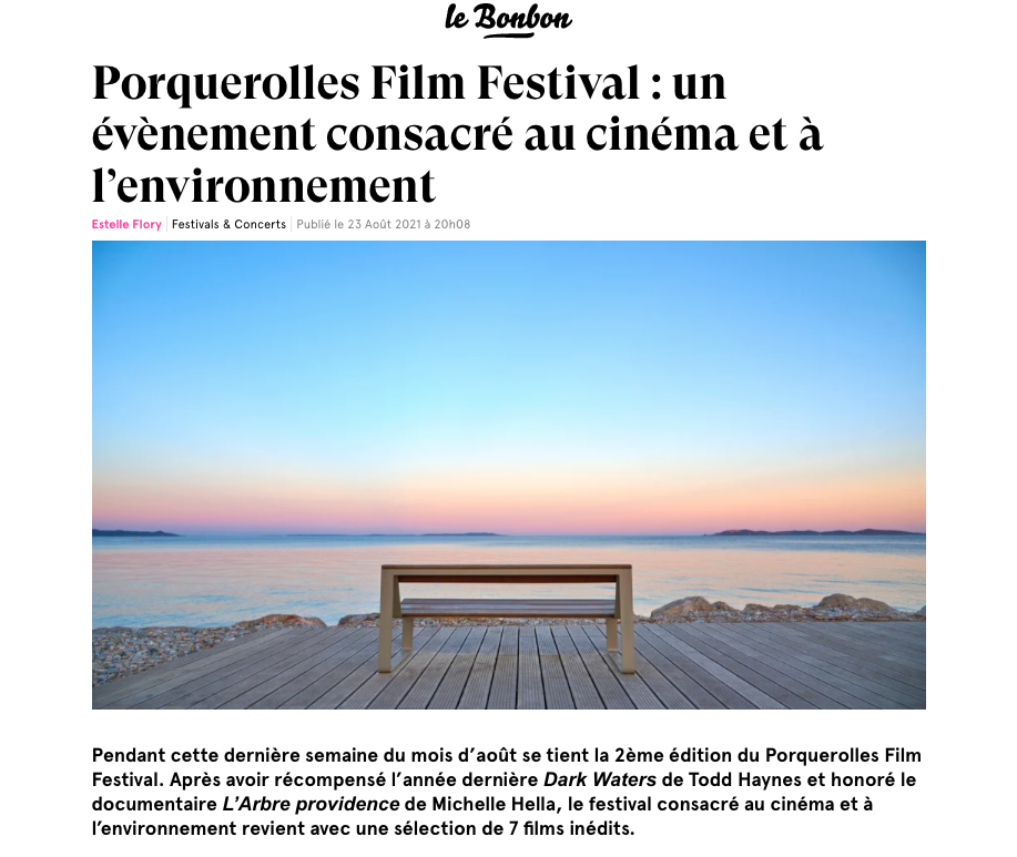 La troisième édition du Porquerolles Film Festival, aura lieu les 11 et 12 juin 2022 Parrainé par Gérard Jugnot et Charles Berling président d’honneur, le festival a pour thème Mer & Océans en écho au « One Ocean Summit » qui se clôturera à Lisbonne fin juin 2022 dont la France est l’initiatrice en tant que présidente de l’Union européenne.